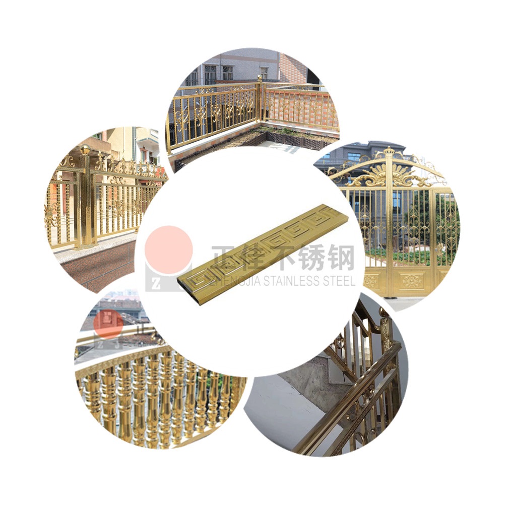 采用優質304不銹鋼矩形管表面鍍金,耐腐蝕性能顯著,表面美觀耐看,廣泛應用于制作各種不銹鋼制品:樓梯欄桿扶手、屏風、大門、防盜網等。