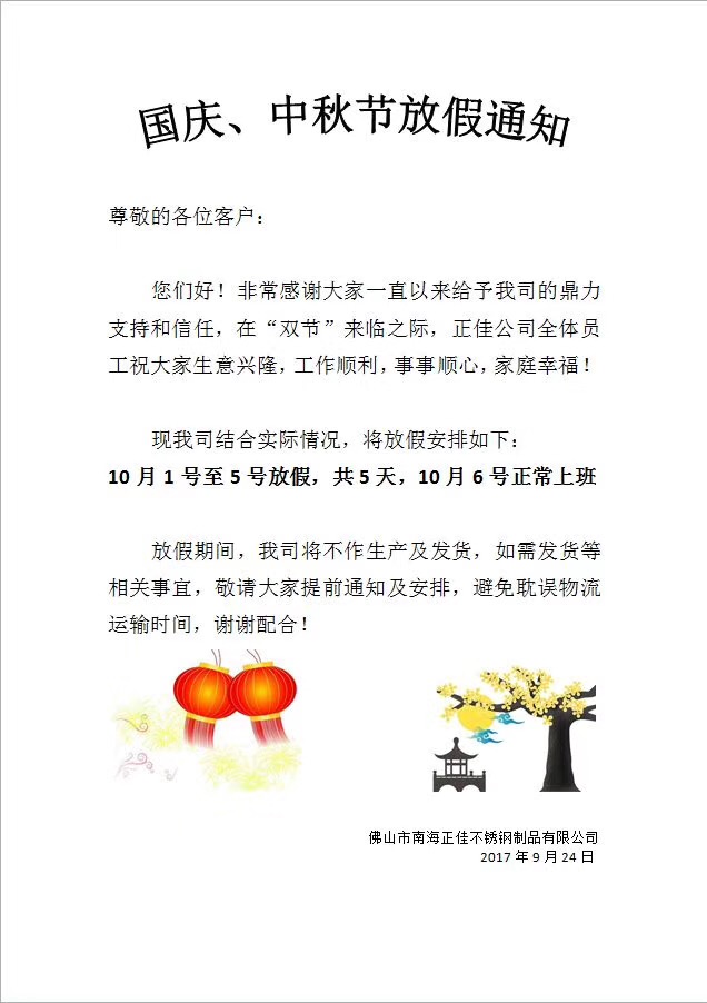 國(guó)慶中秋雙節(jié)放假通知